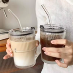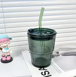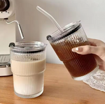 Offrez-vous cette tasse en verre à rayures créatives avec couvercle et paille, idéale pour café, thé, jus ou lait. Résistante, élégante et pratique, elle rend chaque moment plus agréable.