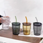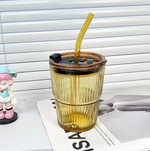 Apportez élégance et originalité à vos boissons avec cette tasse en verre à rayures créatives, équipée d’un couvercle et d’une paille pratique.